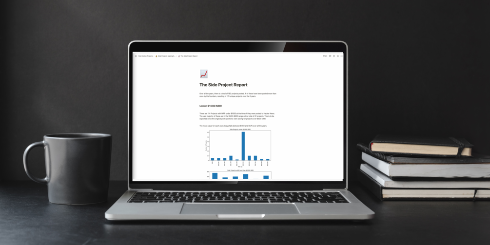 A complete collection of notion databases detailing every side project making real money posted to Hacker News threads from 2014-2024. Learn from the developers who have actually lived the dream, making real money on the side and some projects that have led to them quitting their 9-5 jobs.